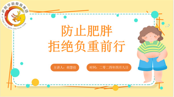 保健醫(yī)通過(guò)生動(dòng)形象的圖片、真實(shí)的案例等,讓幼兒了解到肥胖對(duì)身體的危害,同時(shí)也教育了幼兒注意合理飲食,適當(dāng)運(yùn)動(dòng),養(yǎng)成良好的生活習(xí)慣,爭(zhēng)做健康寶寶。