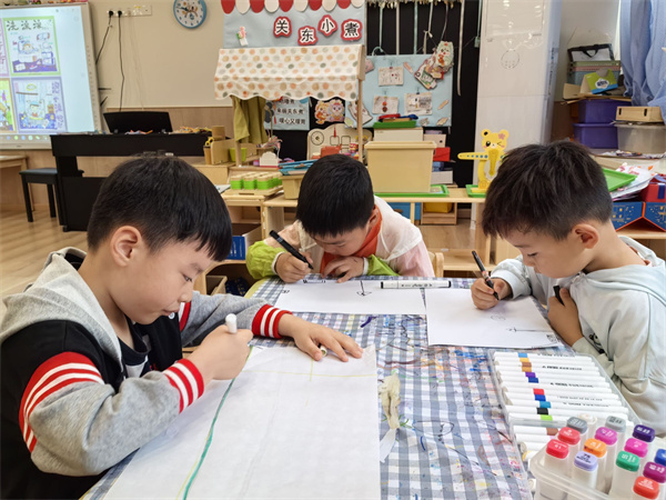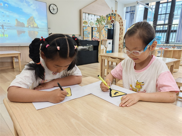 大班的小朋友們化身小小宣傳員,繪制出一幅幅主題鮮明的溫馨提示小圖標(biāo),用于幼兒園各個需要提醒注意的地方。