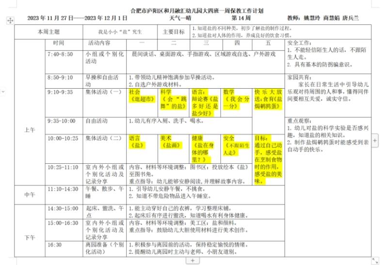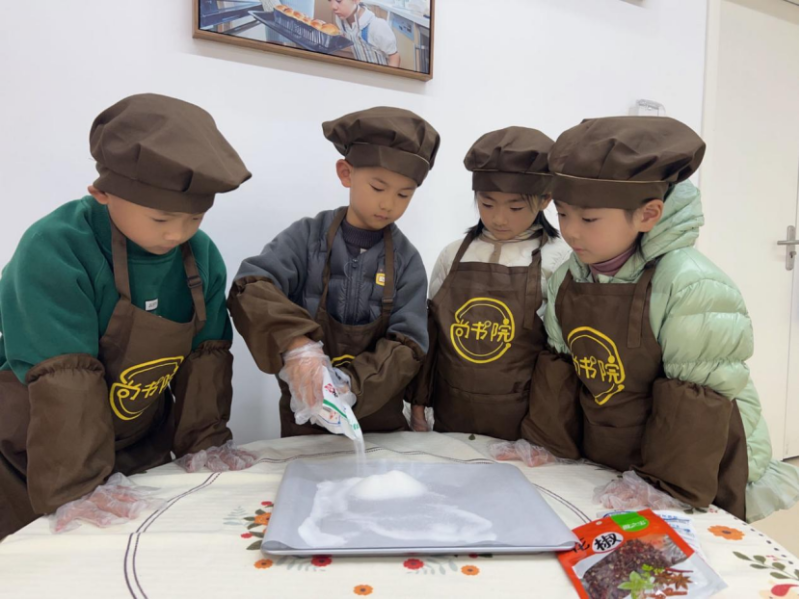 合肥市和月融匯幼兒園以食育活動(dòng)為園本課程,每周一次的烘培坊食育活動(dòng)則是小朋友們最為期待的,一道道美食在小朋友們手上誕生,大家都開心極了。一天上午,浩浩在制作餅的食育活動(dòng)中,不小心將鹽瓶打翻。一時(shí)間大家對(duì)鹽的味道、形狀等產(chǎn)生了極大的興趣,并七嘴八舌討論起來(lái)。老師決定帶領(lǐng)小朋友們深入探索“鹽”在生活中的作用。