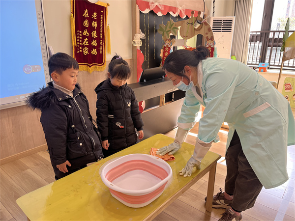 保健醫(yī)生胡老師首先向小朋友們介紹了冬天傳染病主要有流感、皰疹性咽峽咽、手足口病以及諾如病毒感染性腸胃炎等種類。介紹了冬季傳染病的傳播途徑、主要癥狀以及預(yù)防建議。