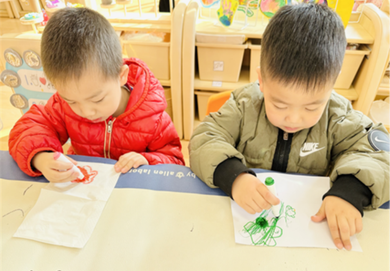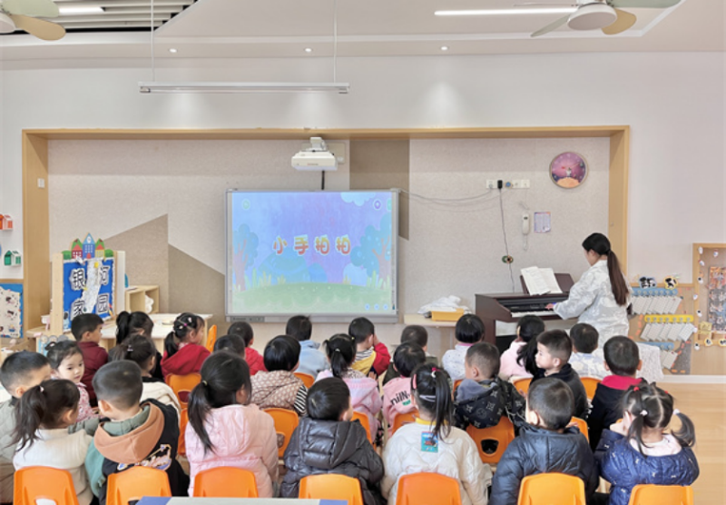 為了更好的將語言活動《會說話的小手》貫穿于晨間、區(qū)域、集體。我們引導(dǎo)幼兒在晨間接待時揮手問好,集體活動時手拉手組隊(duì)。小班幼兒對于一些詞匯不是很理解,在帶班的時候,我發(fā)現(xiàn)讓幼兒放開拉火車的手,如果說“請放開手”,幼兒可能會呆呆的看著你,但是如果說“請拍拍小手,放開小火車。”他們會非常開心配合。于是結(jié)合對幼兒日常生活的觀察,我們組織了藝術(shù)活動《小手拍拍》。