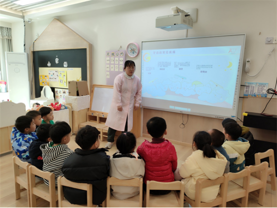 活動前,保健醫(yī)對小班的幼兒進行牙齒保健方面的教育活動,其中就具體提到了牙齒涂氟的好處。