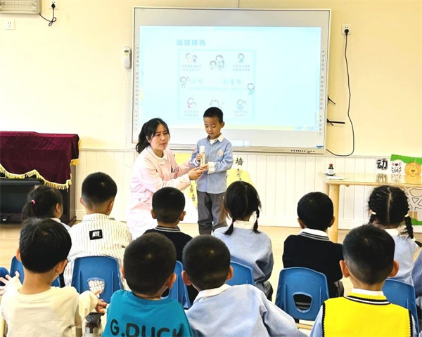 幼兒全神貫注,聽得津津有味。每當(dāng)保健員用生動(dòng)的語言描述意外傷害的情景和防范措施時(shí),他們都會(huì)不由自主地發(fā)出驚嘆之聲,并伴隨著熱烈的掌聲。