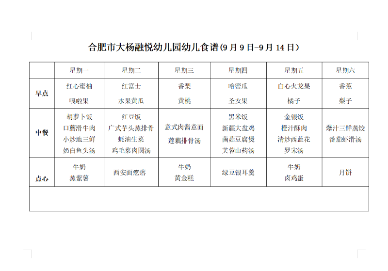 廬陽(yáng)教育發(fā)展集團(tuán)2024年9月9日-9月14日幼兒食譜