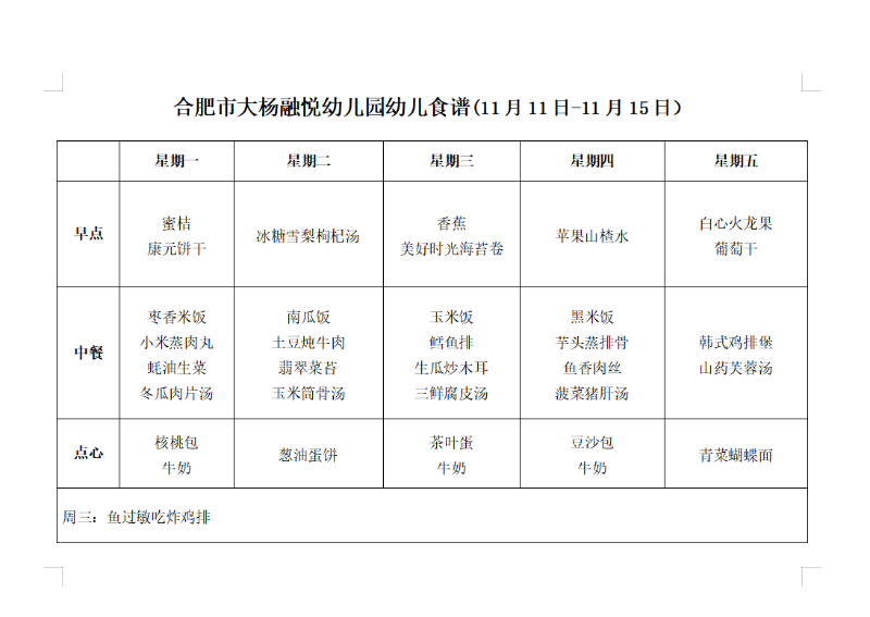 廬陽教育發(fā)展集團2024年11月11日-11月15日幼兒食譜