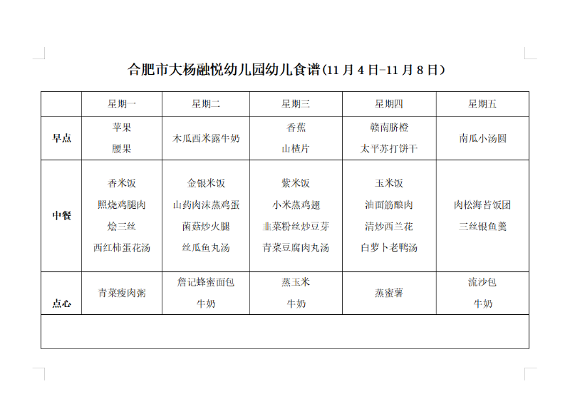 廬陽(yáng)教育發(fā)展集團(tuán)2024年11月4日-11月8日幼兒食譜