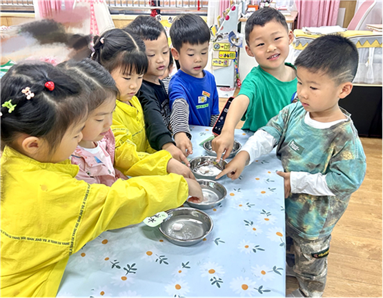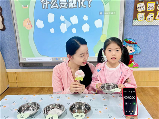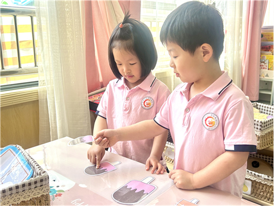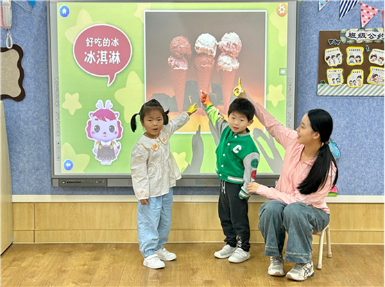 在語(yǔ)言活動(dòng)中,延續(xù)繪本活動(dòng),引導(dǎo)和啟發(fā)幼兒的想象力,為太陽(yáng)送喜歡的冰淇淋;在數(shù)學(xué)活動(dòng)中,引導(dǎo)幼兒進(jìn)行大小的對(duì)比,感知和區(qū)分物體的大小特點(diǎn),以及點(diǎn)數(shù),練習(xí)點(diǎn)數(shù)5個(gè)以?xún)?nèi)的物體;在美術(shù)活動(dòng)中,讓幼兒體驗(yàn)制作黏土棒冰,分享自己的手工,表達(dá)出自己心中最喜歡的棒冰模樣;在科學(xué)活動(dòng)中,帶領(lǐng)幼兒體驗(yàn)有趣的融化小實(shí)驗(yàn),增添了幼兒的趣味性。