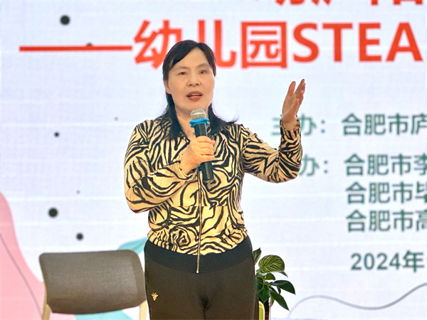 合肥市廬陽(yáng)區(qū)教育體育局幼教教研員方明惠首先向多有參與分享以及在幕后默默付出的老師們表達(dá)了誠(chéng)摯的感謝,并對(duì)今天上臺(tái)分享的老師們給予了高度的贊揚(yáng)。她指出,通過(guò)此次STEAM教研活動(dòng),STEAM駕馭的理念得以深入一線,激發(fā)了廣大幼教同仁們的熱情與共鳴。