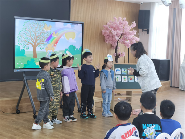 中班幼兒口語(yǔ)迅速發(fā)展、以具體形象思維為主、規(guī)則意識(shí)開(kāi)始萌芽。在活動(dòng)中,老師們用直觀形象的圖片、生動(dòng)有趣的語(yǔ)言及多樣化的教學(xué)方法,為幼兒創(chuàng)設(shè)了直接感知、親身體驗(yàn)、實(shí)際操作的活動(dòng)情境,使幼兒在玩中體驗(yàn)、玩中感悟、玩中學(xué)習(xí),幼兒與教師積極互動(dòng),為幼兒的主動(dòng)發(fā)展創(chuàng)造了條件。