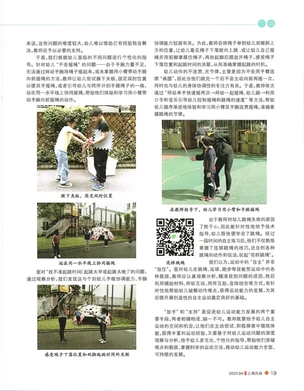 在《3-6歲兒童學(xué)習(xí)與發(fā)展指南》中健康領(lǐng)域動作發(fā)展目標(biāo)要求幼兒要“具有一定的平衡能力,動作協(xié)調(diào)、靈敏”。針對這一目標(biāo)《綱要》明確指出5-6歲幼兒要“能連續(xù)跳繩”。