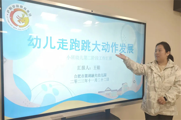在教研過程中,小班王銀老師根據(jù)幼兒的年齡特點,通過觀察幼兒走、跑、跳案例中,教師強(qiáng)調(diào)以幼兒的視角,放手讓幼兒進(jìn)行運動性游戲。其中針對教師放手后出現(xiàn)的問題進(jìn)行分析與總結(jié)。最后還結(jié)合《指南》與《學(xué)前教育健康學(xué)習(xí)與發(fā)展核心經(jīng)驗》,對幼兒的第三階段走、跑、跳發(fā)展的預(yù)設(shè)進(jìn)行了規(guī)劃。