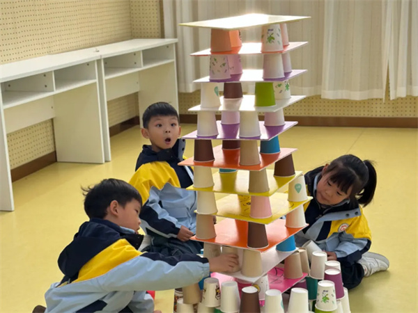 中班教師王青玲分享了中班自主游戲《小紙杯大世界》?!?/font>3-6歲兒童學(xué)習(xí)與發(fā)展指南》中提出,要為幼兒提供豐富的材料和適宜的工具,支持幼兒在游戲中探索并感知材料的特性和物體的結(jié)構(gòu)。在游戲過程中,王老師不斷引導(dǎo)幼兒們發(fā)現(xiàn)問題解決問題。小小的紙杯在幼兒們結(jié)合各種材料不斷搭建,漸漸組成了一個大大的城堡。孩子們在游戲中不僅提高了建構(gòu)技能,還培養(yǎng)了孩子的創(chuàng)造力、合作能力和堅持性的發(fā)展。