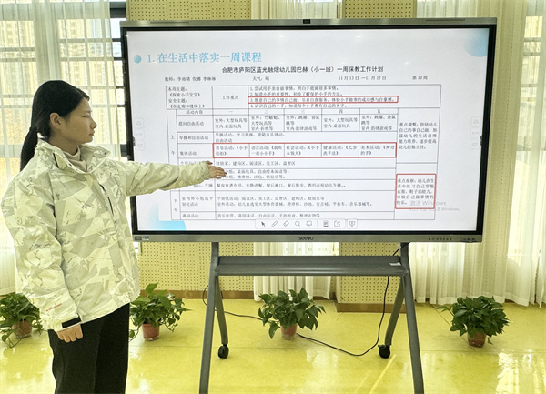 幼兒的一日生活皆課程,一句對(duì)話,一塊石頭、一個(gè)游戲,甚至一片樹(shù)葉,都可能成為幼兒津津樂(lè)道的話題。合肥市藍(lán)光融熠幼兒園開(kāi)展了以“基于兒童視角 聚焦一周課程”為主題的系列教研活動(dòng)。
