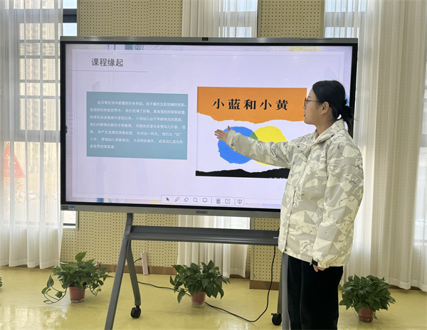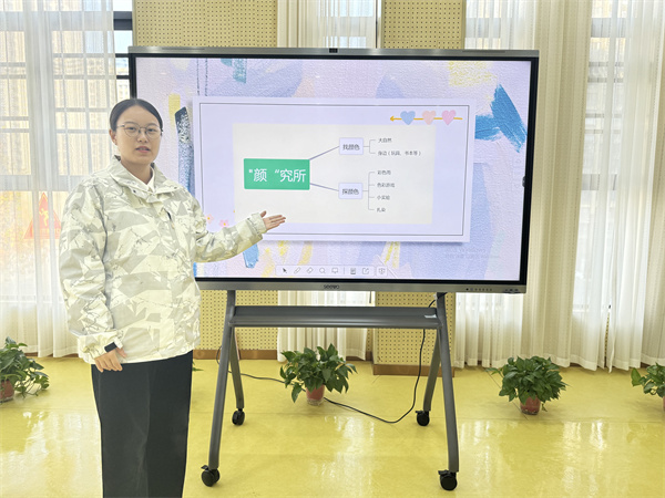 小三班教師劉燕分享的課程是《“顏”究所》課程起源是在日常生活中班級(jí)的幼兒很喜歡五彩斑斕的色彩。在繽紛的色彩世界中,充滿了好奇,具有強(qiáng)烈的探索欲望經(jīng)常在涂涂畫(huà)畫(huà)中變現(xiàn)出來(lái)。小班幼兒由于年齡特點(diǎn)的原因,他們對(duì)鮮艷的顏色非常敏感,而顏色的變化會(huì)使幼兒興奮、驚奇,并產(chǎn)生濃厚的探索欲望。針對(duì)這一特點(diǎn),從“玩”入手,帶領(lǐng)幼兒觀察身邊大自然的顏色,啟發(fā)幼兒成為色彩世界的探索者。