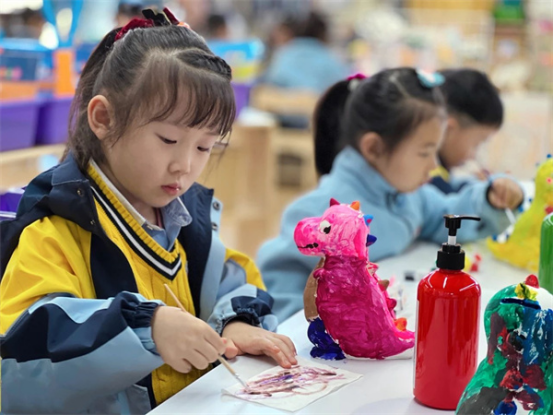 美是一種能力,更是一種素養(yǎng),它需要“耳濡目染”。清源融和園一步一景,大廳的“蒙德里安”轉(zhuǎn)角的“青山綠水”走廊的“徽州小調(diào)”等裝飾精致而有內(nèi)涵,處處都洋溢著孩子們成長(zhǎng)的笑靨。從班級(jí)主題墻到回廊角**,琳瑯滿(mǎn)目、鮮活、靈動(dòng)極具生命力。莫奈班、齊白石班等著名畫(huà)家命名的班級(jí)更讓觀摩的老師覺(jué)得新奇,不知不覺(jué)間體驗(yàn)在環(huán)境里滲透的美育理念。
