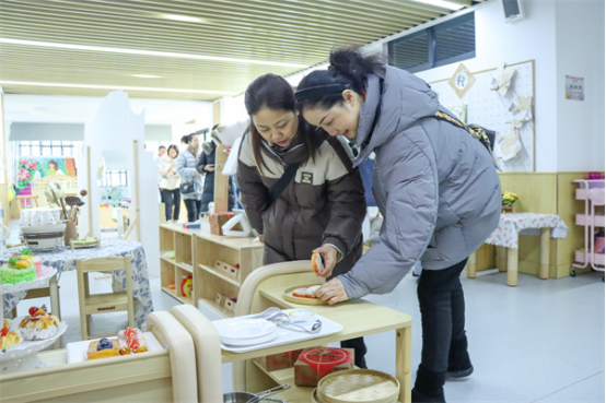 第二站合肥市直屬機(jī)關(guān)幼兒園觀摩教師們來(lái)到了合肥市和月融匯幼兒園。執(zhí)行園長(zhǎng)楊開(kāi)君全程陪同講解。她們深入了解園所管理、園所環(huán)境、園所創(chuàng)建,走進(jìn)班級(jí)區(qū)域活動(dòng),詳細(xì)了解開(kāi)展情況。合肥市和月融匯幼兒園打造“生活館”,園所以“食育”為文化建設(shè),分年級(jí)組開(kāi)展不同地域的食育特色環(huán)境創(chuàng)設(shè),使孩子們身臨其境地感受中國(guó)地大物博的美食文化,各班的區(qū)域活動(dòng)都包含全國(guó)各地美食特色,市直屬機(jī)關(guān)幼兒園一行對(duì)融匯園的各項(xiàng)工作也給予了高度評(píng)價(jià),并表示會(huì)將學(xué)習(xí)到的各項(xiàng)優(yōu)秀工作帶回園內(nèi)進(jìn)行轉(zhuǎn)訓(xùn),給予全園教師賦能。