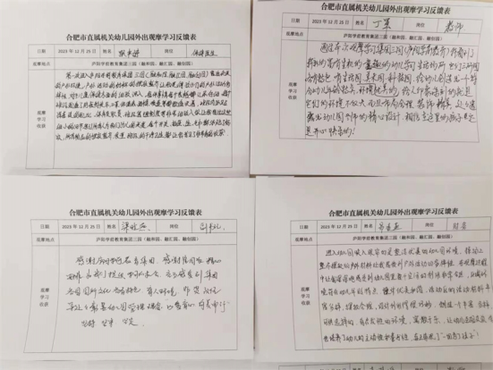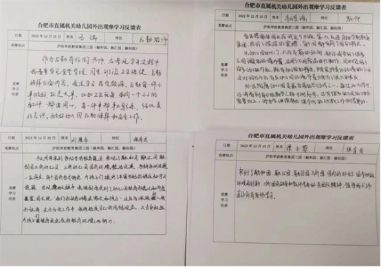市直幼的老師們深感受益匪淺,紛紛表示廬陽(yáng)學(xué)前教育集團(tuán)的精神眼見(jiàn)為實(shí),領(lǐng)教精度,嚴(yán)格而柔情的辦園理念,嚴(yán)謹(jǐn)而溫暖的園所管理,無(wú)不體現(xiàn)出高端時(shí)尚大氣的風(fēng)格,一園一品,一園一特,一園一館將廬陽(yáng)學(xué)前的精神帶回園內(nèi),并在朱晨曦園長(zhǎng)的領(lǐng)導(dǎo)下,發(fā)揚(yáng)光大。