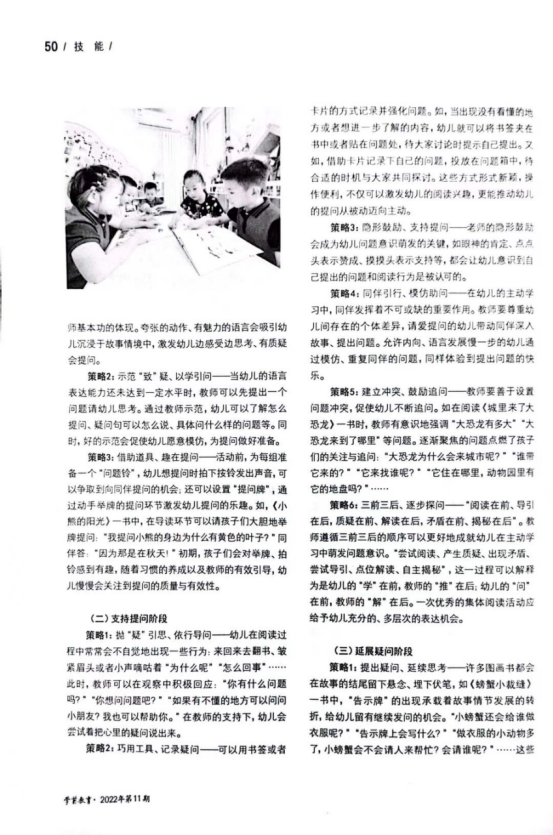 教師要對(duì)幼兒早期閱讀有真正的理解,正確的引導(dǎo)幼兒進(jìn)行早期閱讀活動(dòng),培養(yǎng)幼兒?jiǎn)栴}意識(shí)是一項(xiàng)立足于幼兒長(zhǎng)遠(yuǎn)發(fā)展的實(shí)踐性探索,尋找到適合培養(yǎng)幼兒?jiǎn)栴}意識(shí)的指導(dǎo)策略才能夠讓孩子真正的進(jìn)行早期閱讀,真正的發(fā)揮早期閱讀的價(jià)值與魅力,達(dá)到教育的目的。