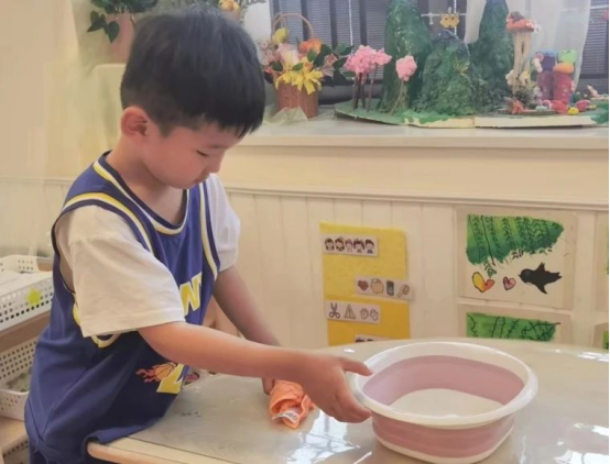 小小值日生上崗啦!看,他們個(gè)個(gè)精神飽滿,充滿干勁!在結(jié)合自身的已有經(jīng)驗(yàn)和教師的細(xì)致講解示范后,幼兒擦桌子、掃地、整理區(qū)域材料、疊衣服。還負(fù)責(zé)更新天氣播報(bào)站的信息、掛好毛巾、擦拭桌子以及整理圖書等工作,確保班級(jí)的環(huán)境整潔有序。