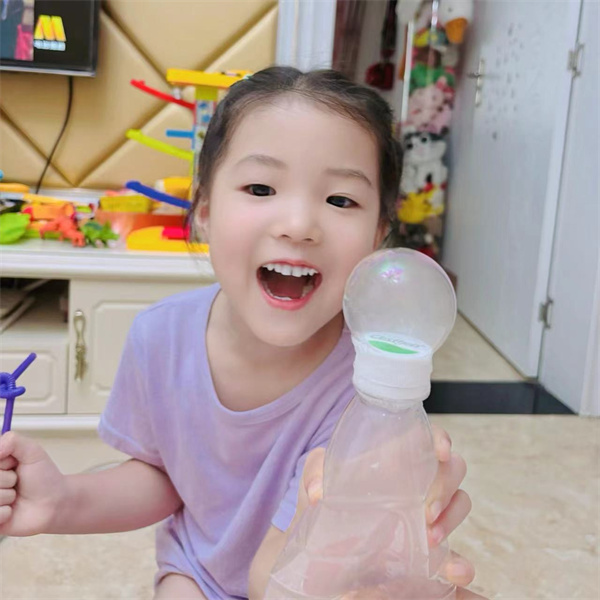 彩虹泡泡龍:孩子們利用塑料瓶子的上半部分和尼龍布綁在一起,沾上泡泡水,加上好看的顏色,就可以吹出彩虹泡泡長(zhǎng)龍啦!