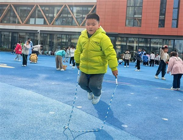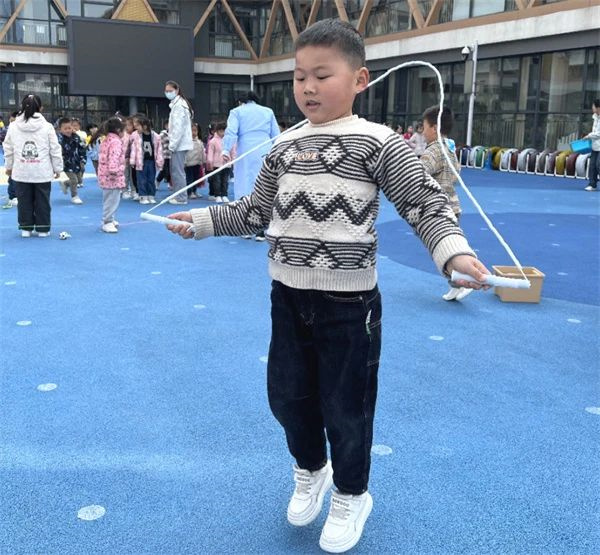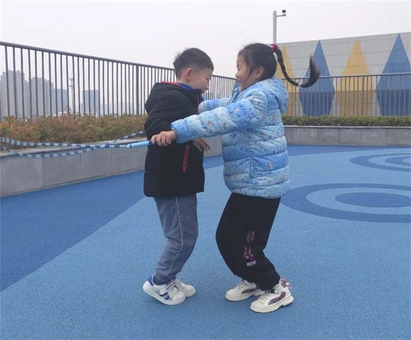 經(jīng)過前兩周的熟悉,孩子們跳繩的興趣越發(fā)濃厚,拿起繩子認(rèn)真練習(xí),看!有的小朋友已經(jīng)會一個接著一個慢慢跳了,還有的小朋友會連貫跳起來了,還有的居然嘗試起了雙人跳繩。