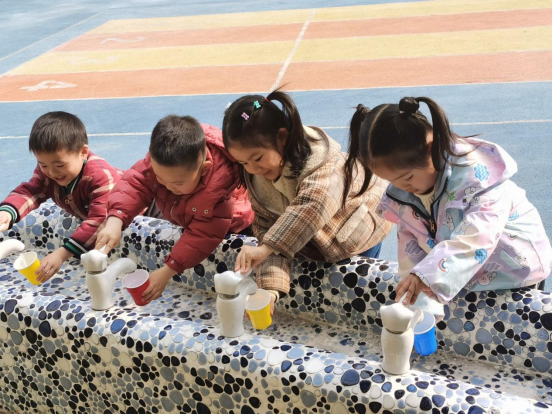 在我們幼兒園里,哪些地方能用到水呢?為此,小班的小朋友們展開了一場“水滴蹤跡大探索”,找一找,水寶寶存在幼兒園哪些地方?