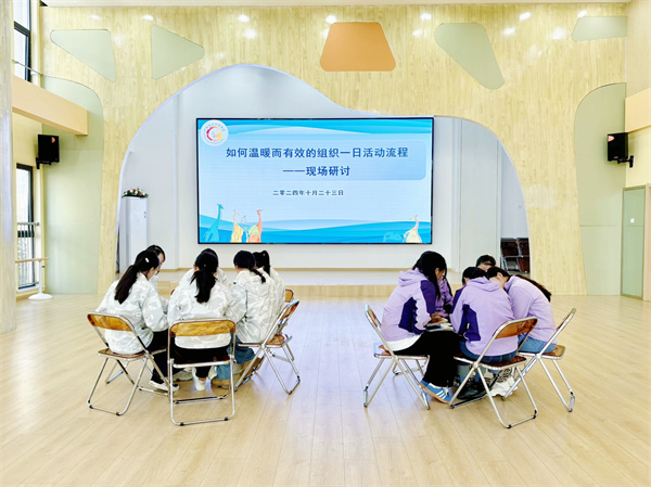 研討之余,結(jié)合今天的教研,老師們圍繞著“—如何溫暖而有效的組織一日活動(dòng)”展開深入探討,大家各抒己見,暢所欲言,針對(duì)活動(dòng)組織中可能出現(xiàn)的問題去思考、難點(diǎn)如何突破、優(yōu)化改進(jìn)措施等,進(jìn)行了分組研討。在研討中我們相互交流,化個(gè)人經(jīng)驗(yàn)為集體智慧,也讓兩園教師更加清楚明確了一日活動(dòng)組織有效的方法與實(shí)施途徑。