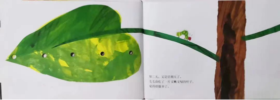 又是星期天了。毛毛蟲吃了一片又嫩又綠的葉子,覺得舒服多了。