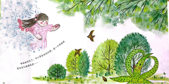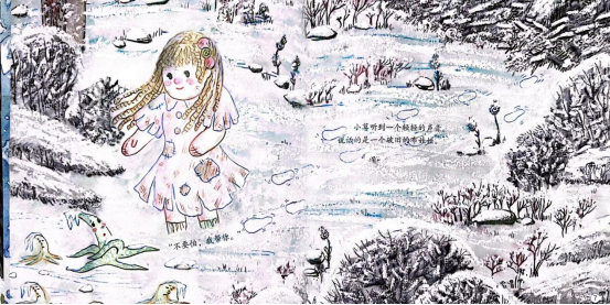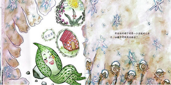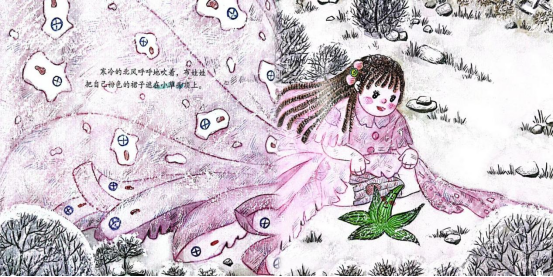 寒冷的北風(fēng)呼呼地吹著,布娃娃把自己粉色的裙子遮在小草頭頂上。