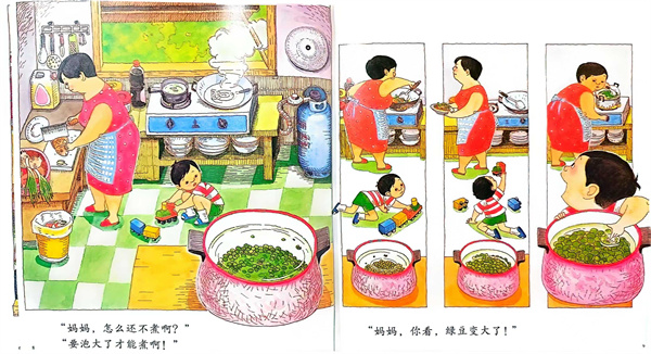 “媽媽,快點!煮綠豆。”