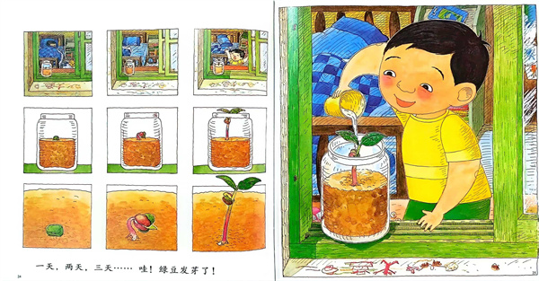 “媽媽,你看,綠豆變大了!”