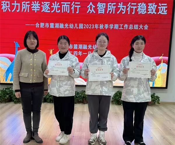 廬陽(yáng)學(xué)前教育集團(tuán)麓湖融光園:李思雨 刁瑩 鄭飛老師 在2023年秋季學(xué)期環(huán)境創(chuàng)設(shè)評(píng)選活動(dòng)中,榮獲一等獎(jiǎng)