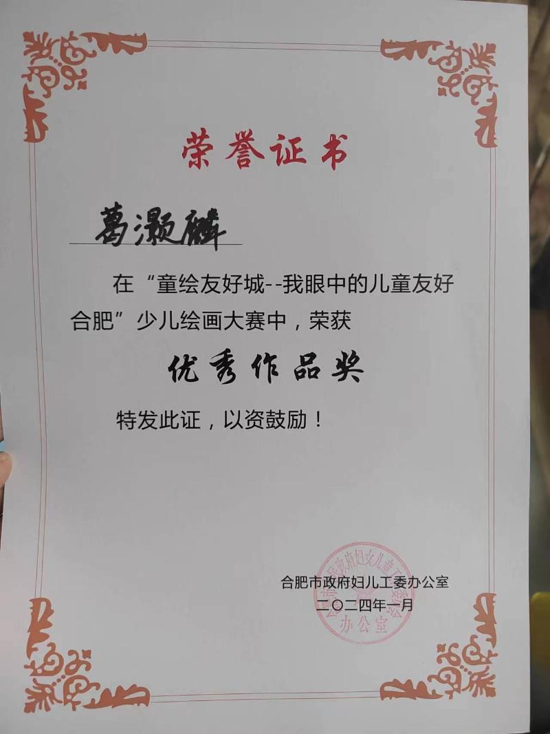 廬陽學(xué)前教育集團(tuán)麓湖融光園:在”童繪友好城--我眼中的兒童友好合肥“少兒繪畫大賽榮獲優(yōu)秀作品獎