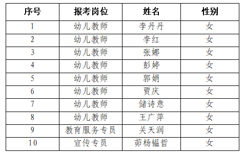 根據(jù)《廬陽教育發(fā)展集團2024年年度公開招聘公告》要求,經(jīng)網(wǎng)上報名、資格初審、資格復審、面試、體檢和考察程序,以下10名同志確定為本次公開招聘擬錄用人員,公示期限為3天。