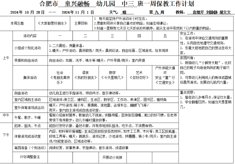 廬陽教育發(fā)展集團(tuán)童興融暢園:中班第九周保教工作計(jì)劃