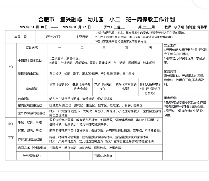 廬陽教育發(fā)展集團(tuán)童興融暢園:小班第十二周保教工作計(jì)劃