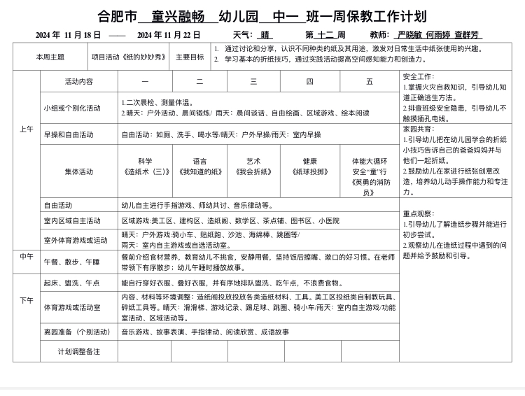 廬陽教育發(fā)展集團(tuán)童興融暢園:中班第十二周保教工作計(jì)劃